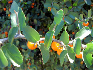| Desert Hackberry, Celtis ehrenbergiana. October 11, 2006. Boyce Thompson Arboretum, Near Superior, Arizona. |