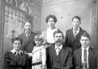 | Back, Arlie, Sabra, John Chandler Front Martha Florence Pitts Chandler Rom Pitts sister, Harold, Oliver Chandler, Lester | George T. Henson, Sarah Henson, Mattie Myrtle, James At Muskogee OK |