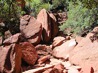 | The Palatki Sinagua Cliff Dwelling Ruins Are Under The "Red Canyon" Cliffs And Hidden By The Trees On The Left Of The Trail. Sedona, Arizona. Photos Taken September 23, 2009. |