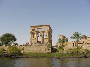 In the 20th Century the island of Philae was flooded by the Low Dam. The High Dam waters of Lake Nasser completely submerged the island when it was be completed. The temples on the island were therefor completely dismanteled and moved about 550 Meters north of Philae, between the years 1972 - 1980 AD to the island of Agilika on Lake Nasser. Today it is still commonly said that the various monuments are on Philae Island, even though they really are on Agilika Island. Tradition said that it was from Philae (Pilak in Egyptian) that Isis watched over the tomb of Osiris on the neighboring island of Biga. The Temple Of Isis and Horus The Child dominated the group of monuments erected between the 26th Dynasty and the Roman Period.
