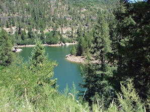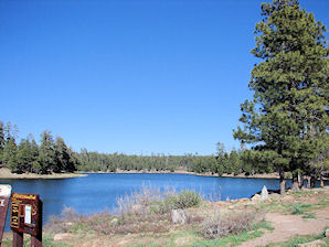 Stretching from just southwest of Flagstaff to the White Mountains of eastern Arizona, the Mogollon Rim marks the southern edge of the Colorado Plateau in Arizona. This long escarpment, thousands of feet high in some areas, extends for almost 200 miles across central Arizona. The average elevation of this undulating rim and plateau country is about 7,000 feet. The Mogollon Rim is known for its stands of ponderosa pine, which comprise the largest ponderosa pine forest in the United States. Timber production was a major part of the region's economy, helping to establish the towns in and near the vast pine forests of the area. Today, the United States Forest Service manages much of the region with three national forests: the Kaibab, Coconino, and Apache-Sitgreaves National Forests. The region is named for Juan Ignacio Flores Mogollon, a Spanish colonial governor whose last name is pronounced "MUG-ee-own." Thus the "MUG-ee-own" Rim. There are several lakes located in the Mogollon Rim, which are known as the Mogollon Rim Lakes. Here is a brief description for each of the Mogollon Rim Lakes. There are photographs below. Clicking on the photos will take you to more detailed descriptions of each of the Mogollon Rim Lakes. Bear Canyon Lake: Latitude: 32.37417 Longitude: -110.69111 is located about 44 miles northeast of Payson and 25 miles west of Heber-Overgaard in the Mogollon Rim country at about 7,600 feet elevation. It is a narrow, canyon-bound lake with a thick surrounding forest that extends to its shoreline. It has two different access points where you can park and then take a short hike to the shore. The water surface is about 50 acres with a maximum depth of abut 50 ft. It is stocked with Rainbow Trout six times annually. It also has arctic grayling, brookies, and cutthroat trout. Fly-fishing or wading from the shore is not recommended since in most places the tree line comes right up to the water's edge. Black Canyon Lake: Latitude: 34.32778 Longitude: -110.7 is located at 7,067 feet, in the Apache-Sitgreaves National Forest between the towns of Payson and Heber-Overgaard. It is closest to Heber; being located 15 miles southwest of Heber, on the Apache-Sitgreaves National Forest. The roads to the lake are generally closed from December to early April due to snow. It contains trout, bass and sunfish. Blue Ridge Reservoir: Latitude: 34.51111 Longitude: -110.8242 is located at 6,604 feet, in the Coconino National Forest on the Mogollon Rim near Payson. Blue Ridge Lake or Reservoir is a winding canyon shaped lake. It's water surface is about 9 miles long and about 70 acres in size, with an average depth of about 147 feet. The closest camping is located 2.5 miles away at Rock Crossing Campground. The graveled FR 751 road to the lake is closed in winter due to snow. Boat motors limited to a maximum of 10 horsepower. It contains Rainbows, & Brown Trout. Chevelon Canyon Lake: Latitude: 34.51111 Longitude: -110.8242 is a rather isolated lake located along the Mogollon Plateau about 60 miles northeast of Payson. Its nearest access point requires about a 1 mile hike. It is located at 6,376 feet, in the Apache-Sitgreaves National Forest between the towns of Payson and Heber-Overgaard. It is closest to Heber; being located 15 miles southwest of Heber, on the Apache-Sitgreaves National Forest. The roads to the lake are generally closed from November to late April due to snow. It contains Rainbow and wild Brown Trout that grow to trophy size. It is said that the largest fish of all the Rim Lakes are in Chevelon Canyon Lake. Knoll Lake: Latitude: 34.4275 Longitude: -111.09194 is located northeast of its sister-lakes of Woods Canyon and Willow Creek Lakes on the Mogollon Rim, in Leonard Canyon, Arizona, a few miles north of the Mogollon Rim. Its water comes to it from Clear Creek. It gets its name from a rocky island or knoll located in the middle of the lake. Knoll Lake is under the care of the Blue Ridge Ranger District of the Coconino National Forest. The lake covers approximately 75 acres and is about 50 feet deep. It is located 108 miles southeast of Flagstaff and 21 miles or 30 minutes from Payson on paved and graveled Forest Roads. Its elevation is 7,340 feet. It contains Rainbow and Brown Trout. Willow Springs Lake: Latitude: 34.31389 Longitude: -110.8756 is located at 7,516 feet, in the Apache-Sitgreaves National Forest almost half way betrwen the towns of Payson and Heber-Overgaard. It is closest to Heber; being located 22 miles southwest of Heber, on the Apache-Sitgreaves National Forest. It is 23 miles east of Payson. The roads to the lake are generally closed from December to early April due to snow. It contains Bass, Brook Trout, Cutthroat Trout, Largemouth Bass, Rainbow Trout. Woods Canyon Lake: Latitude: 34.33944 Longitude: -110.9517 is located at 7,510 feet, in the Apache-Sitgreaves National Forest and it is near the Tonto and Coconino National Forests. Primarily a Trout fishing lake, Woods Canyon Lake's season lasts between May and October of each year. Electric Boat Motors are required. It is easy to access with 5 camping areas. There are picnic areas with restrooms and a boat ramp. There is also a concessionaire who rents boats, sells fishing licenses, bait, and tackle, and operates a well-stocked country store. There is also an RV dump station about a mile from the lake. The lake contains Rainbow Trout.