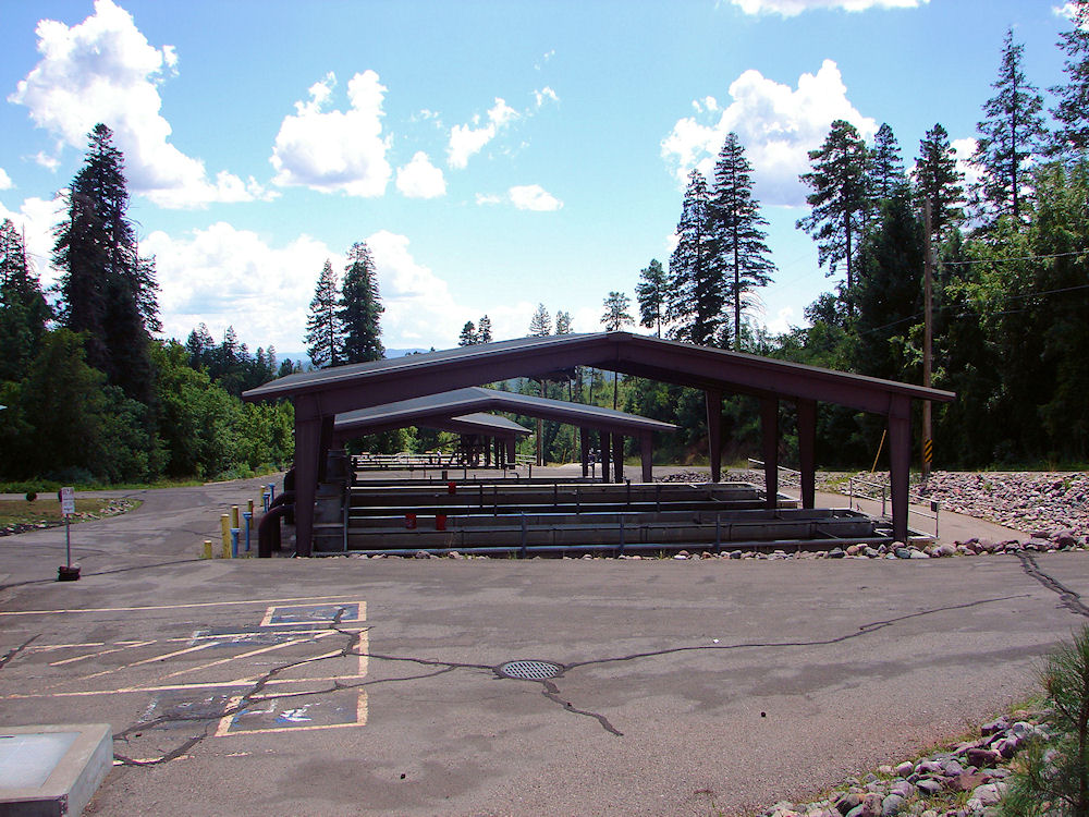 Tonto Creek Fish Hatchery, The hatchery is located about 21 miles east of Payson. 6,291 feet elevation. The Arizona Game and Fish Department has operated this hatchery since 1938. The property was only two acres at that time. The property was expanded in 1954 and again in 1987. It now comprises 50 acres. A Google Earth Map search marks center of the Tonto Creek Fish Hatchery Main Entrance Pond at about 34o 22' 54.06" N 111o 05' 51.26" W. Tonto Creek Fish Hatchery is the most visited of Arizona�s fish hatcheries. The hatchery raises Arizona�s State Fish, the Apache trout, as well as rainbow and brown trout. It is located on Tonto Creek just below the Mogollon Rim with beautiful scenery all around it. Of course, Tonto Creek is a riparian habitat with a wide range of riparian birds year round including heron, belted kingfisher, osprey, and American dipper, particularly during the fall and winter. Other riparian breeding birds along the creek include common black-hawk, broad-tailed hummingbird, black phoebe, warbling vireo, American robin, bridled titmouse, Virginia�s and MacGillivray�s warblers, black-headed grosbeak, and occasionally an indigo bunting. Merriam�s turkey, band-tailed pigeon, acorn woodpecker, nuthatches, towhees, and a variety of other woodland birds also frequent the area. White-tailed deer, elk, black bear, Abert�s squirrel, Arizona gray squirrel, and mantled ground squirrel are also found in the area. Reptiles and amphibians inhabiting Tonto Creek include Mexican gartersnake, Sonoran mountain kingsnake, Arizona black rattlesnake, the greater short-horned lizard, plateau lizard, many-lined skink, Arizona treefrog, and the Arizona toad. A few fish-eaters such as raccoons have been known to stop by and try to sample trout at the hatchery. We saw one eating a trout the day we photographed the hatchery for this web page. When you visit the hatchery you will learn about fish production and to view trout. Tonto Creek Fish Hatchery produces and stocks over 165,000 catchable rainbow trout and 400,000 brook and cutthroat trout each year, plus about 150,000 of Arizona's State Fish - the Apache Trout. The Hatchery is open from 8 am � 4 pm daily, except holidays. There are no camping facilities at the Hatchery. However, many Forest Service and private camping areas exist along the road into the facility. Of course, the Hatchery is closed to angling, but trout produced in the facilities are stocked in surrounding streams and rivers, including Tonto Creek. Daytime temperatures vary from highs around 90�F in the summer to as cold as 0�F in the winter. For more information about camping, contact the Payson Ranger District at (928) 474-7900.