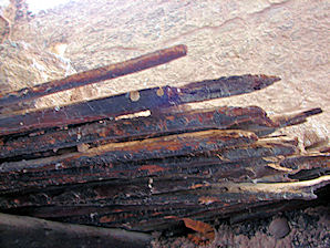 It is thought that construction of the Upper and Lower Cliff Dwellings began in about 1300 AD and continued until the Tonto Basin was abandoned sometime between 1400 - 1450 AD. The size of the cave under the cliff (about 70' wide x 80' high x 60' deep) allowed for a large work area that contains a cistern, capable of holding approximately 100 gallons of water. The Upper Cliff Dwelling has small doorways which helped retain heat; many were actually sealed when the rooms were no longer being used. Some of the doorways are shaped like a "T" or half-"T", which may have reduced drafts. It is thought that they perhaps were used to hold jars or help someone balance while entering the room. However, they resemble the "Sacred T" windows of Mexico and Central America, in which the "Devine Breath Of God" could enter. It is still possible to see the fingerprints of the ancient people who built these remarkable structures in the mud walls. One of the last rooms completed in the Upper Cliff Dwelling has reeds in the ceiling instead of the saguaro ribs that were used used in areas of older construction. Was this an attempt to try something new, or is it evidence of over-utilization of resources? We don't know!
