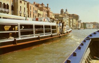 | Water Busses (vaporetto) Take You To The Grand Canal | The Bridge (Ponte degle Scalzi) Entrance To The Grand Canal |