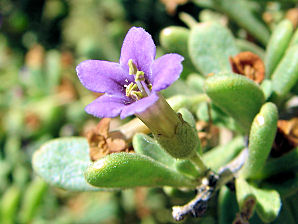 Flowers: Monoecious; narrow tubular, 5 lobed, 1/2 inch long, lavender to purple, appearing in primarily late winter to early spring, some throughout the year.