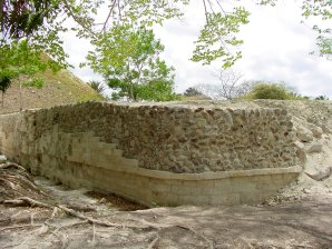 The Adjacent Plaza B is dominated by the sites largest temple, The Temple of Masonry Altar, which rises 60 feet above the plaza and was the last in a sequence of buildings raised on this spot. This temple was probably the main focus of religious ceremonies, with a single stairway running up the front to an altar at the top.