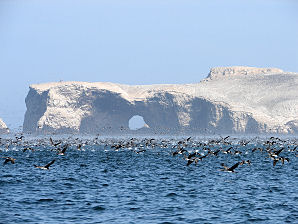The Islas Ballestas (Ballestas Islands) are spectacular islands with many caves and arches, which provide shelter for thousands of seabirds and sea-lions. Although the islands fall just outside the Paracas National Reserve they are protected by separate legislation. The islands are home to over 150 species of marine bird including the Humboldt penguin, cormorants, boobies and pelicans. Even condors have been known to visit. On the shores can be seen large numbers of sea-lions and in the sea it is possible to encounter dolphins and even whales. The Paracas National Reserve area played an important role in the Peruvian economy during the mid-nineteenth century. Large amounts of "guano" (birds' droppings) produced by the seabirds was gathered and exported to Europe for use as fertilizer. For many decades this industry was Peru's most important source of revenue. Remanants of this industry can still be seen upon the islands. The Paracas peninsula also gave birth to the Paracas Culture, known for its pottery, textile and mummies. The Paracas people formed a well-developed culture from about 1300 BC until 200 AD, long time before the Inca. In Paracas there is also the Candelabra or "Candelabro", a giant figure etched into a hill, similar to the Nazca Lines. Nobody knows who made this drawing or what it means. Although it is called the "candelabra", the candle, it probably represents a cactus. Visitors are not allowed onto the islands but the views of wildlife from the boats are excellent. The tours also pass the "Candelabro"; which is a 50 m long candelabra - shape traced onto a desert hillside overlooking the sea. The only way for the tourist to get to the Islas Ballestas is by taking an organised tour (there are many agencies in Pisco and Paracas). The tours are inexpensive costing about $10 - 15 US and comprise a speedboat trip accompanied by a guide for about 2 hours. The boats depart between 08:00 and 10:30 AM from the fishing jetty at El Chaco Port near the village of Paracas. Sea Bird Guano And The Ballestas Islands: Guano was widely used by the native populations of pre-Spanish Latin America for centuries as a fertilizer to increase crop yields. However, it was not until the early 1800s that guano was rediscovered by the Europeans to have valuable agricultural benefits as a fertilizer. The best source of guano was discovered on a series of islands off the coast of Peru which are barren and rocky with no vegetation due to lack of rain in the area. Peru's primary guano islands are the Chinchas, the Ballestras, the Lobos, and the Macabi and Guanape islands. Peru's guano was considered to be the best for farming. Guano is made up of bird droppings amassed over hundreds of years due to weather and ocean currents. What distinguished Peru's guano from guano found at other sources around the world was due to the unique weather conditions found along Peru's coast. Because of the Humboldt or Peruvian Current, which flows cold water from Antarctica to the equator along Peru's coast, this creates an interesting weather pattern where the cold water and warm air prevents the fall of rain in this part of the world. Due to the lack of rain on the islands along Peru's coast, the accumulated bird droppings are baked in the dry atmosphere which preserves the nitrates in those droppings from evaporating, thus maintaining its effectiveness. Another factor that made guano an effective fertilizer was that its contents originated from fish-eating birds. Remnants of the guano industry can be seen on the Ballestas Islands and some modern day factories can be seen on other islands in the area. We visited the Ballestas Islands on April 13, 2006 at about 8:15 AM. This page is for information purposes only and while we have made every effort to be accurate, it is the travelers responsibility to make the appropriate choice as to which hotels to use in Peru. We found that when touring Peru, Magical Cusco Tours gave us the best service of all. They even arranged very personal tours based upon our ages and experience. They were there for us whenever we needed them. Click on any of their links on our pages and they will give you a 4% discount for taking their package tours. Mention delange.org. Merchant Code Inka2010 for your discount! We suggest letting Ana Maria handle your tour. Note: The 4% discount applies to package tours only! Discount does not apply to hotel bookings, domestic or international tickets, meals or any other service booked as a single activity.