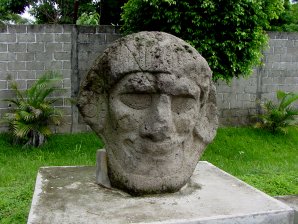 We begin our journey to El Baul, Guatemala by first considering: SANTA LUCIA: COTZUMALGUAPA - population 24,000 elevation 356m. About l00 km east of Retahuleu is the unexciting but historically important town of Santa Lucia Cotzumalguapa. In the sugarcane fields and fincas near town stand great stone heads carved with grotesque faces and fine relief scenes. The question of who carved these ritual objects, and why, remains a mystery.