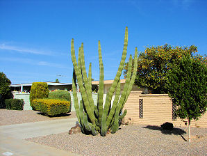 | Organ Pipe Cactus, Stenocereus thurberi, February 2, 2006. Cousin Peggy's Home. Peoria, Arizona. |