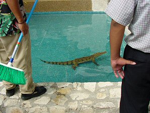 | View Fron The Lake. Westin Camino Real Hotel. Lake Peten Itza Near Tikal. | Sign To The Feeding Area. Westin Camino Real Hotel. Lake Peten Itza Near Tikal. |