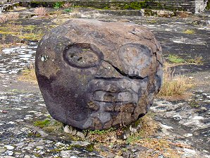 | Head Sculpture On East Side Of Patio. | Frieze Under Tin Shed On West Side Of Patio. |
