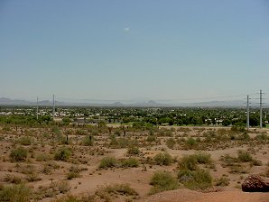 | Looking East Another "Sunwatch Station" Located Near The Two Small Distant Hills! | Looking East SouthEast "Circlestone" Is About 40 Miles Away Between The Power Poles Superstition Mountains Right Of Poles! |