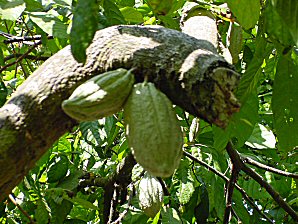 | Cocao Orchard. | Green Immature Cocao Fruit. |