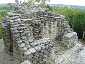 Kinichna, Quintana Roo, a Mayan ruin near the Rio Bec Region. It actually is located closer to Kohunlich so it should be visited if you are already in the area of Kohunlich. You could include Dzibanche in the same visit. We drove on Mexico Highway 186, a paved two-lane road passing through several small Mayan villages. They still had many of the type of houses that the Maya have built for hundreds of years – thatched dwellings with stone or pole walls, raised on a platform. Near the village of Nachi Chon, approximately 50 km west of Chetumal, we turned at the sign pointing to Dzbinche and Kinichna. A deeply potholed one-lane road runs through maize and cane fields to the deserted sites. The Mayan sites of this area were mostly known only to archaeologists until recently and the small villages are unaffected by tourism. There are no services at the sites so be sure to take lots of water and food if desired. Be sure you have plenty of gasolene since the station in Xpuhil is the only place to fill up after leaving Chetumal! We spent our time walking all over the largest structure on site which is a large pyramid structure with many other structures attached to it. At this time there are very few signs that actually point out what you are looking at on the site. The signs there are very unclear in their descriptions. Almost all of our photos were taken at the main structure. They simply show the various parts of the structure.