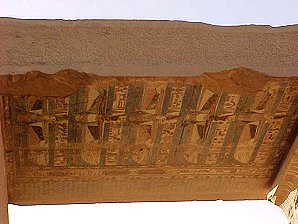 The temple at Kom Ombo is about 30 miles (48 km) north of Aswan and was built during the Graeco-Roman period (332 BC-AD 395). The name Kom Ombo (the ancient Greek settlement of Ombos) comes from the Ancient Egyptian word nubt which means City Of Gold. The town is located in the mouth of an old wadis which lead to the regions in which gold was mined. The temple of Kom Ombo is located upon a hilllock at the ancient site of Ombos which has been occupied from prehistoric times. A feature of the temples features is a double row of doors leading to a double sanctuary. The Northern half is dedicated to the falcon god Harwer, or Horus The Elder. The Southern half is dedicated to the crocodile god Sobek. The two gods are accompanied by their families. Harwers wife Tesentnefet (The Good Sister) and son panebtawy (Lord Of The Two Lands). Sobeks consort Hathor and son Khonsu. The Southern half develops the theme of the king entering the temple, followed by spirits bearing the produce of the Land of Egypt. On the inner face of the second enclosure is a unique illustration of surgical instruments. Sobek wears a crown of double plumes which rest on horizontal, curved ram�s horns. A sun disk sits at the center base of the plumes, and uraei (rearing cobras) rest on each side.
