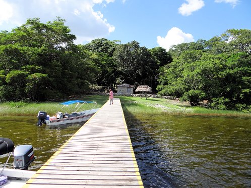 | Lamanai Ruins Boat Dock. November 16, 2012. | Eve DeLange At Lamanai Entrance. November 16, 2012. |