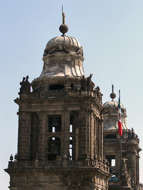 | West Bell Tower, Lower Part. Metropolitan Cathedral Or Catedral Metropolitana Mexico City D.F. México. | West Bell Tower, Upper Part. Metropolitan Cathedral Or Catedral Metropolitana Mexico City D.F. México. |