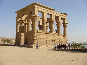In the 20th Century the island of Philae was flooded by the Low Dam. The High Dam waters of Lake Nasser completely submerged the island when it was be completed. The temples on the island were therefor completely dismanteled and moved about 550 Meters north of Philae, between the years 1972 - 1980 AD to the island of Agilika on Lake Nasser. Today it is still commonly said that the various monuments are on Philae Island, even though they really are on Agilika Island. Tradition said that it was from Philae (Pilak in Egyptian) that Isis watched over the tomb of Osiris on the neighboring island of Biga. The Temple Of Isis and Horus The Child dominated the group of monuments erected between the 26th Dynasty and the Roman Period.