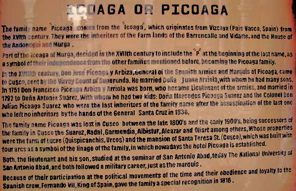 | Plack Of Name Origin Of The Marquis de Picoaga |