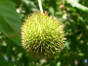 Fruit & Seeds: Each brown round ball is composed of numerous tiny, tufted seeds (achenes); the balls disintegrate over the winter, dispersing the seeds with the wind.